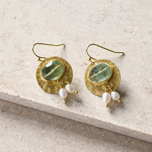 Brass Drop Glass And Pearl Earrings (1.5" L)