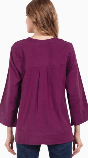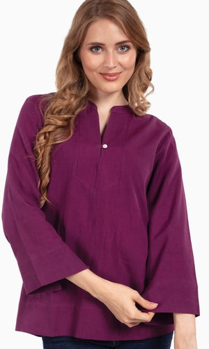Our Flax Linen Tunics are made with 100% flax linen material which is luxuriously soft, breathable, and low maintenance. This elegant Fair Trade tunic features a stand collar, slit neck with button, cuffed sleeve with slits, and pleats at the back.