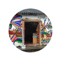 This cross was hand-painted in the famous La Palma folk art style. Founded by internationally known Salvadoran artist Fernando Llort, the cooperative paints in the simple, joyful, colorful folk art style for which Llort's work is known.