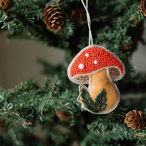 The mushroom is a trendy motif loved by various generations. Gift or hang this ornament around the holidays or year round for some festive cheer!