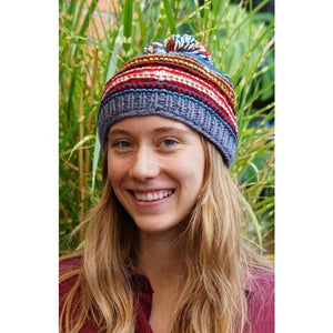 Multi-Color stripe hat w/multi-color pom pom, fleece lined. Assorted.