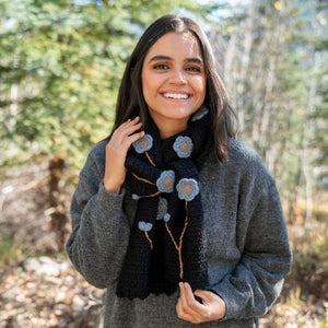Elevate your style with our beautifully embroidered scarf, featuring delicate floral designs that will make a statement in any season. Handmade in Peru with a soft blend of acrylic and alpaca, this scarf combines warmth, comfort, and vibrant charm, perfect for completing any outfit.