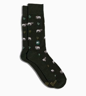 These elephant socks that do a trunk-load of good! With a dark green backdrop and green foliage any elephant would love to snack on, this pair is truly unforgettable.