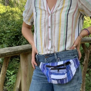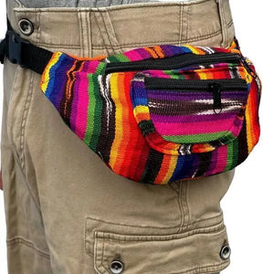 Featuring vibrant stripes in varying widths and colors, this 100% cotton waist pack offers maximum utility with three zippered compartments. Whether you're running errands or out for a day of adventure, its adjustable strap ensures a comfortable fit.